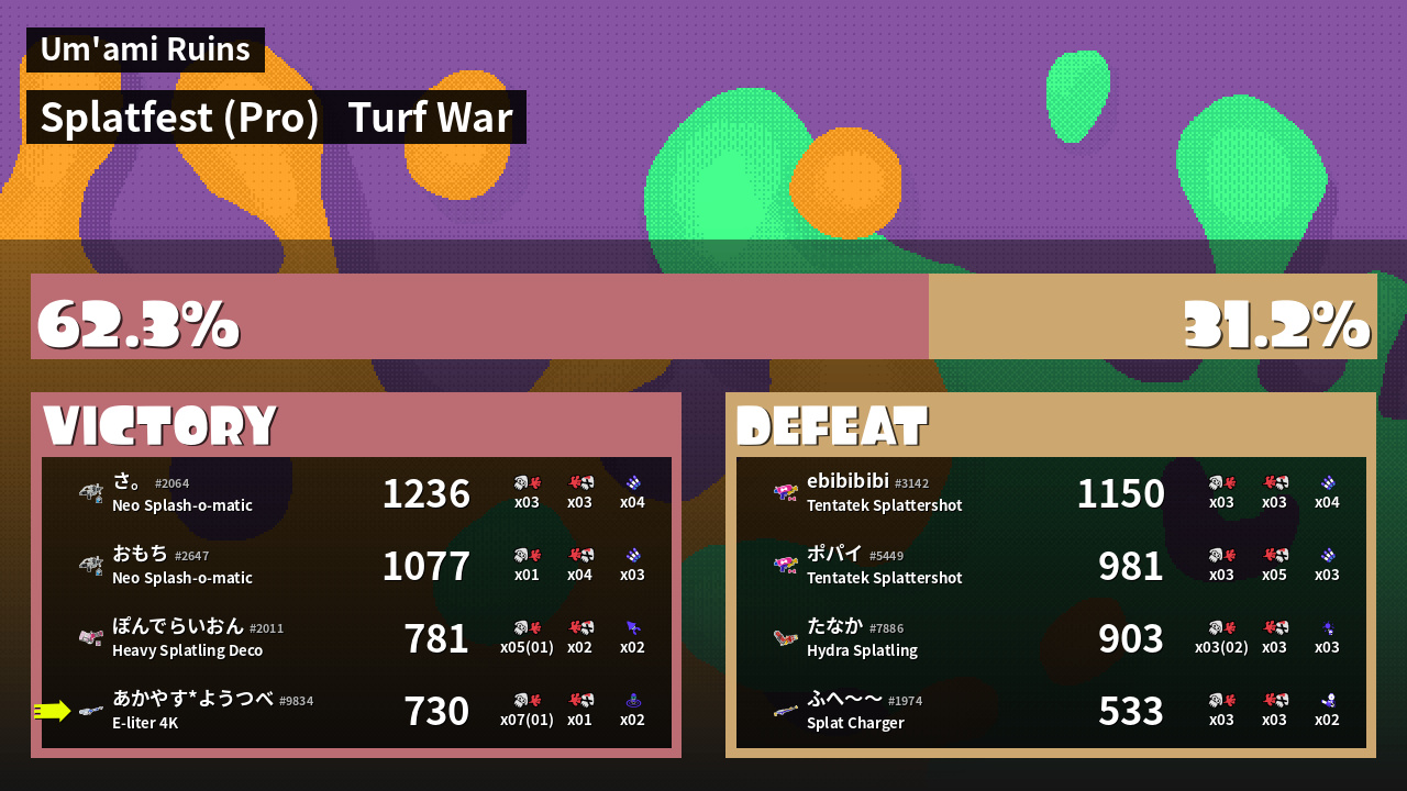 Kills / Deaths | 6 + 1 / 1 > Kill Ratio: 6.00 | ||