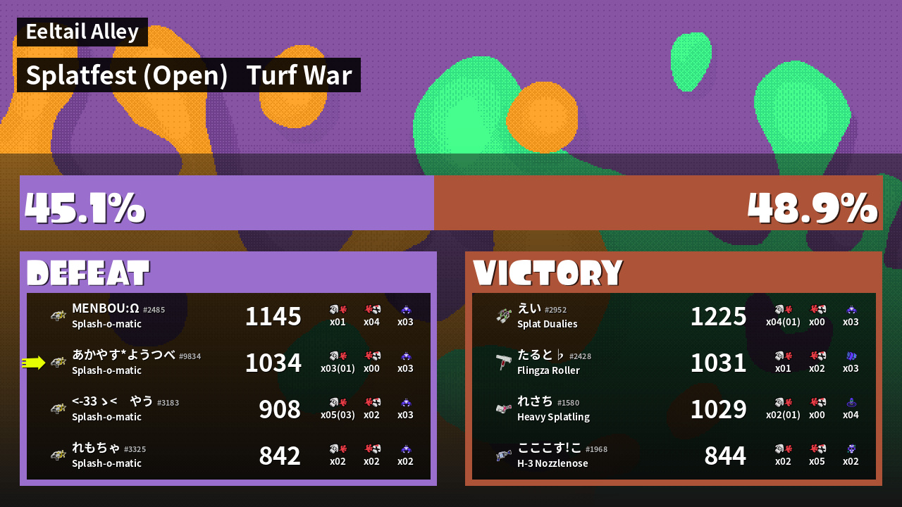 | Medals | #1 Popular Target #1 Home-Base Inker #1 Enemy Splatter | ||