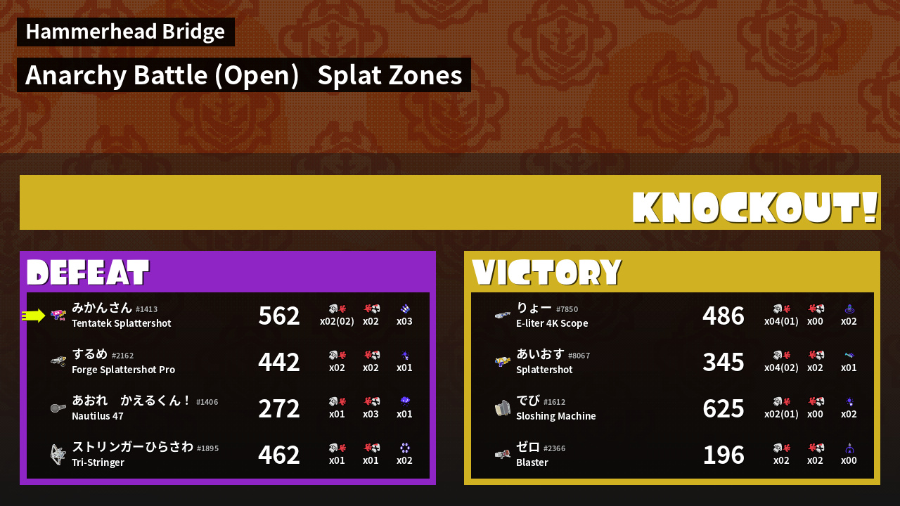 | Mode | Splat Zones - Anarchy Battle (Open) | ||