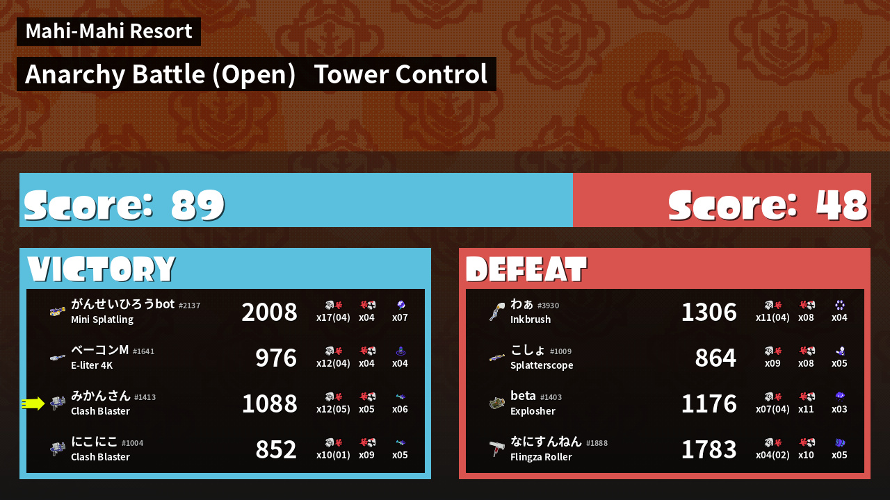 | Mode | Tower Control - Anarchy Battle (Open) | ||
