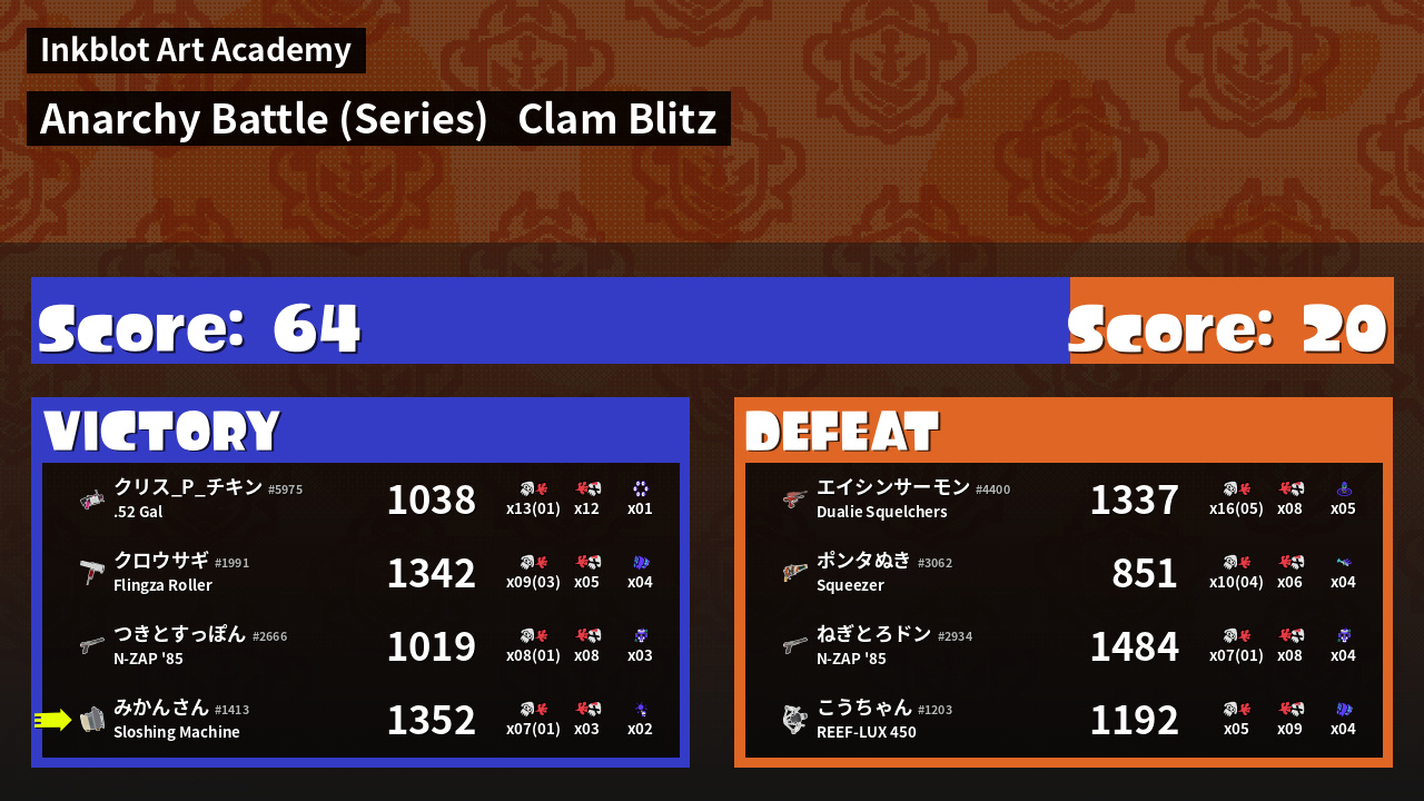 | Mode | Clam Blitz - Anarchy Battle (Series) | ||