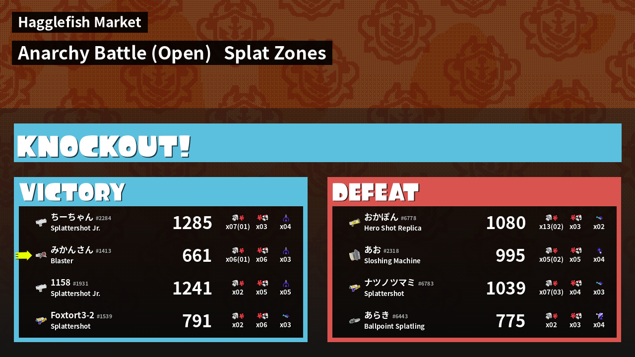 | Mode | Splat Zones - Anarchy Battle (Open) | ||