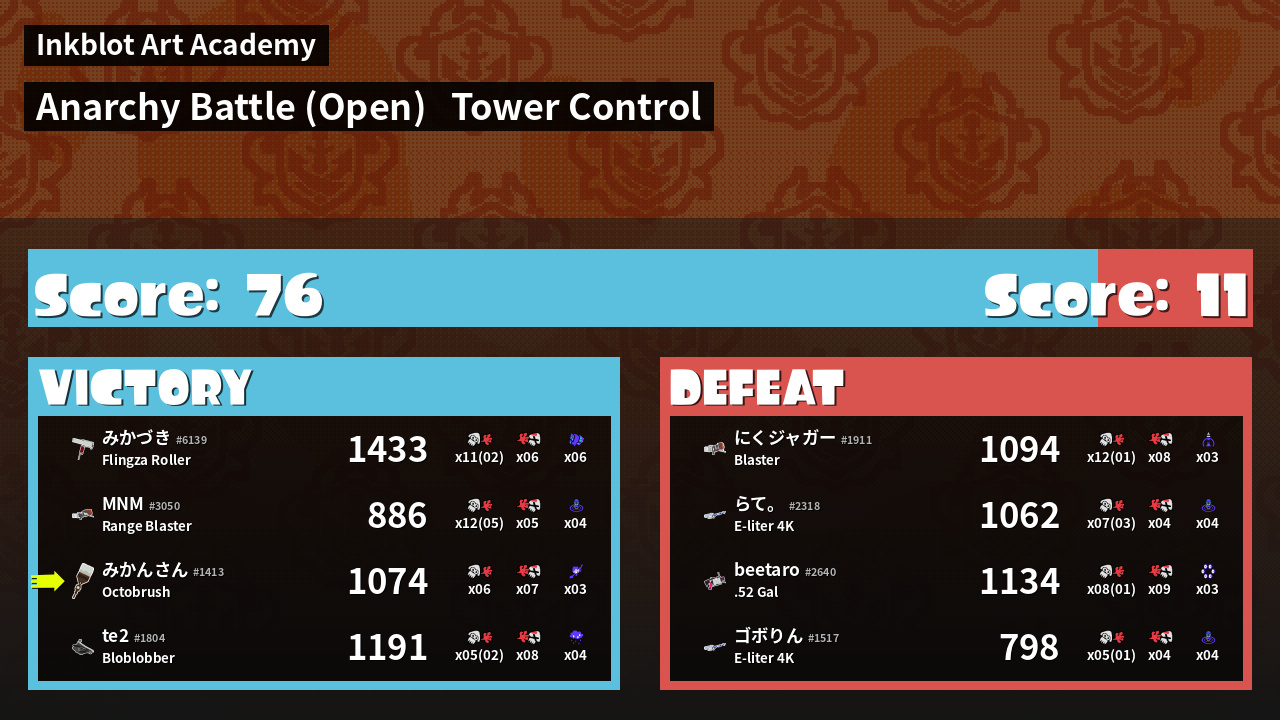 | Mode | Tower Control - Anarchy Battle (Open) | ||