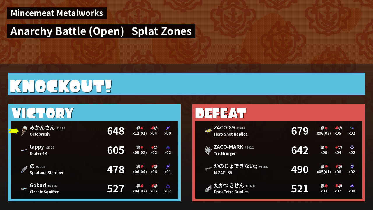 | Mode | Splat Zones - Anarchy Battle (Open) | ||