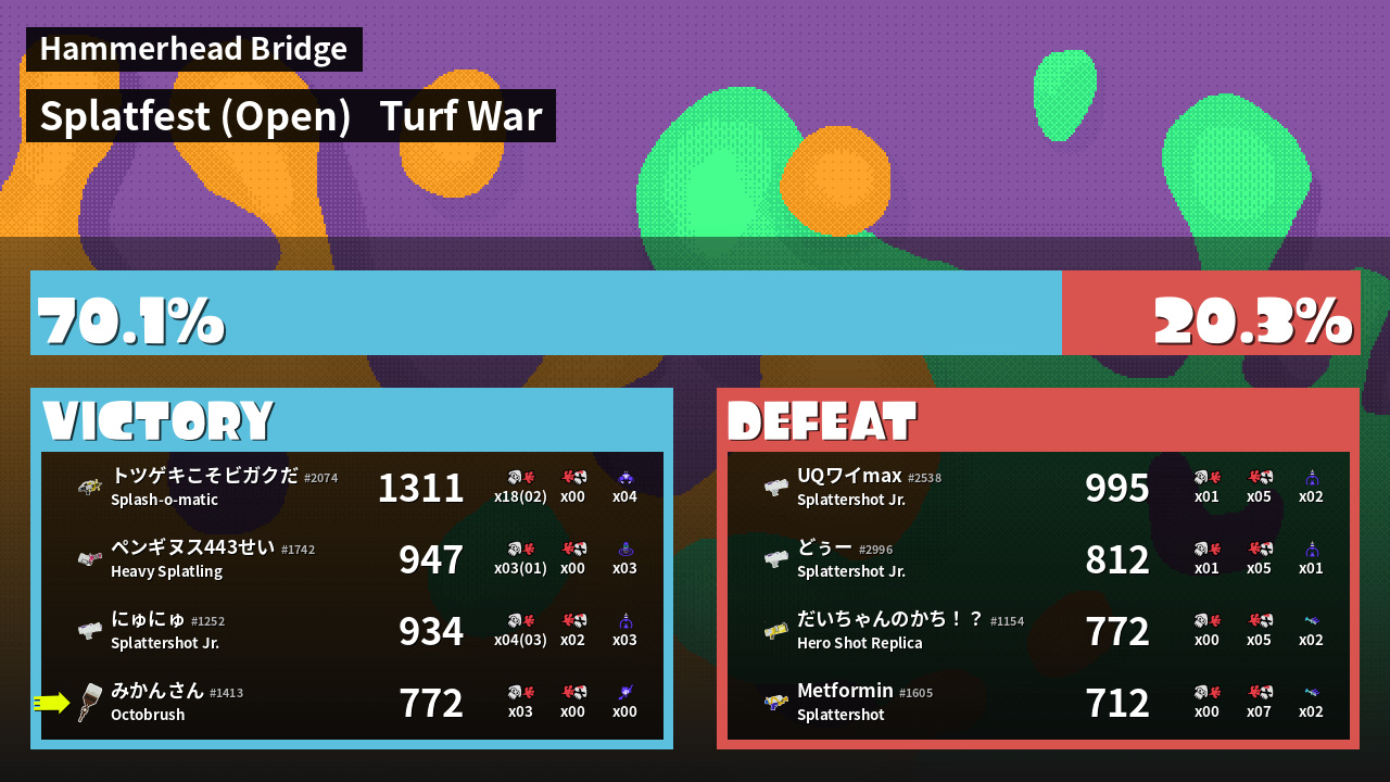 | Medals | #1 Super Jump Spot #1 Ink Consumer #2 Home-Base Inker | ||