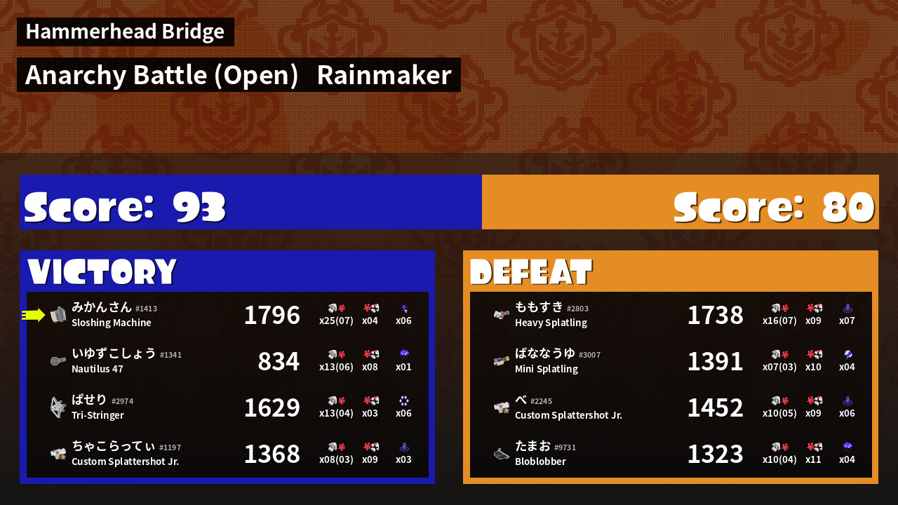 | Mode | Rainmaker - Anarchy Battle (Open) | ||