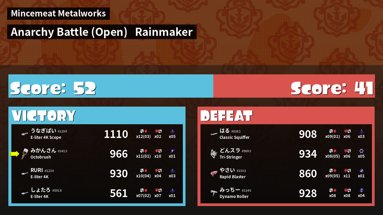 | Mode | Rainmaker - Anarchy Battle (Open) | ||