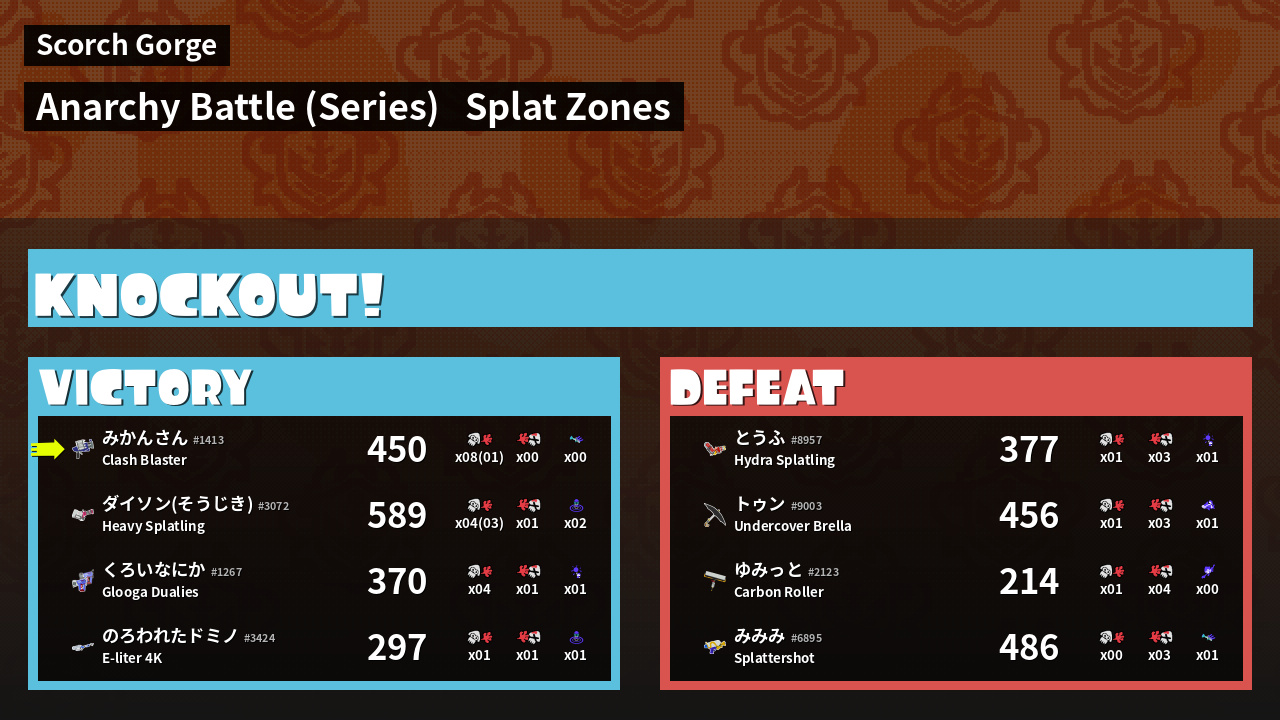 | Mode | Splat Zones - Anarchy Battle (Series) | ||