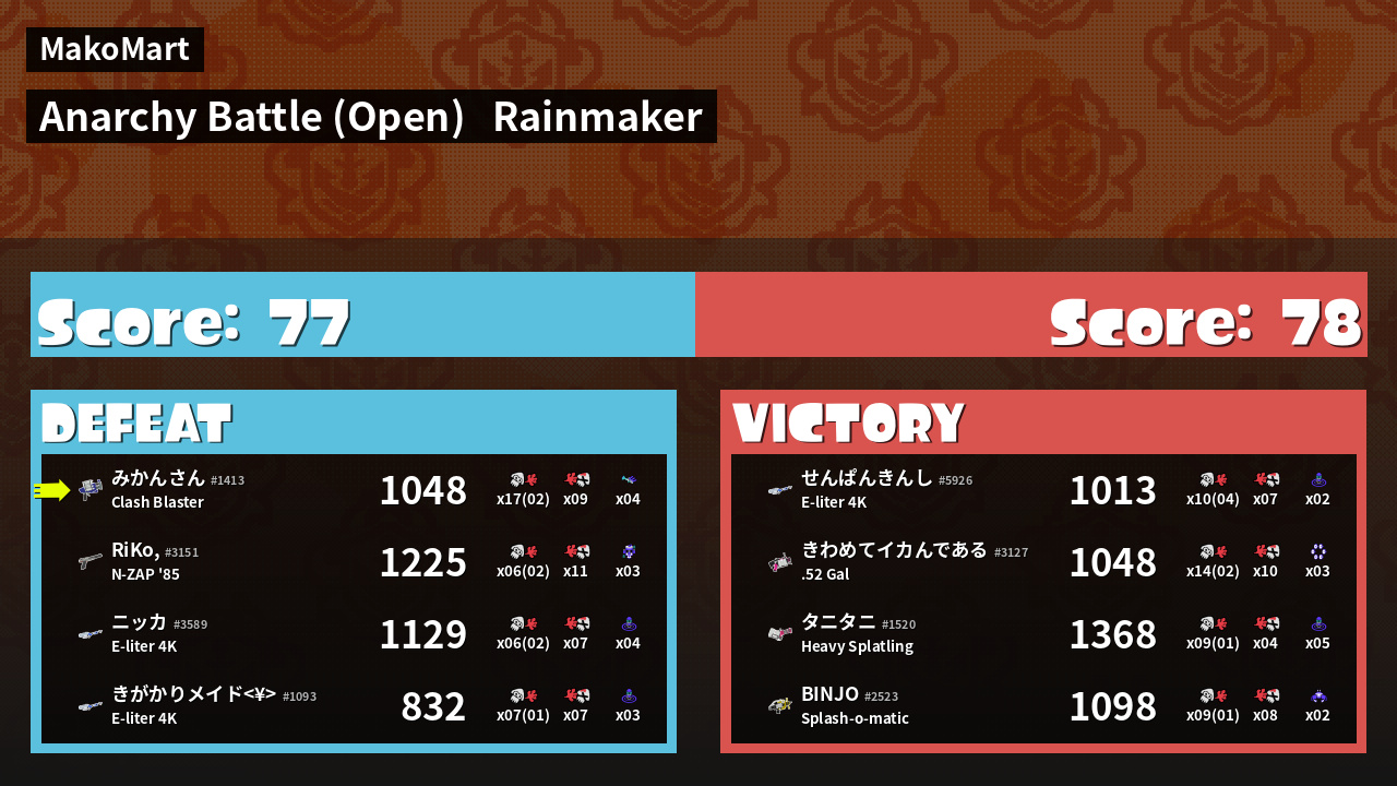 | Mode | Rainmaker - Anarchy Battle (Open) | ||