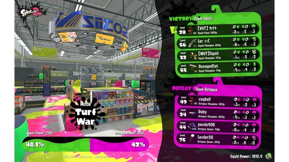 | Splatfest Power | 1,810.9 | ||||||||||||||||||||||||||||||||||