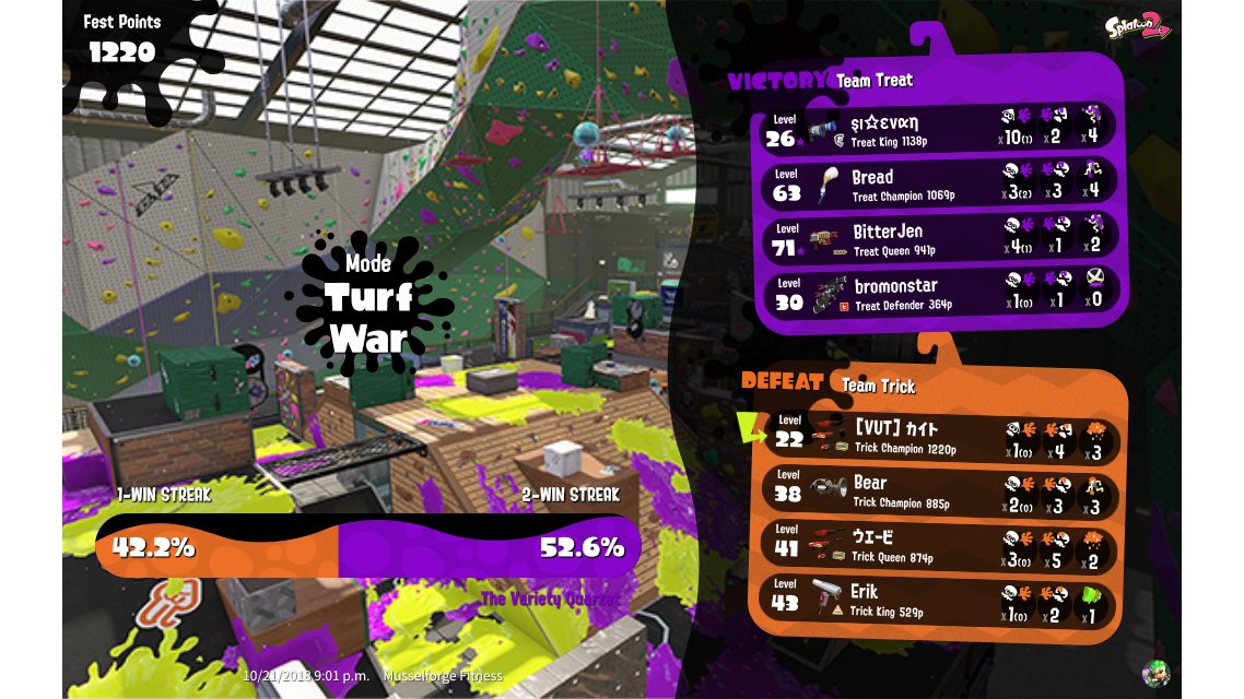 | Splatfest Title | Trick Champion → Trick King | |||||||||||||||||||||||||||||||