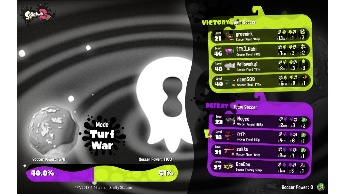 | Splatfest Title | Soccer Fiend 4 → Soccer Fiend 6 | ||||||||||||||||||||||||||||||||||
