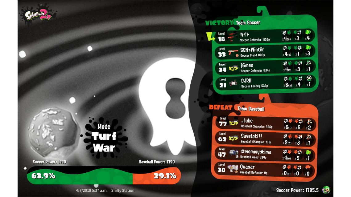 | Splatfest Title | Soccer Defender 21 → Soccer Defender 28 | |||||||||||||||||||||||||||||||