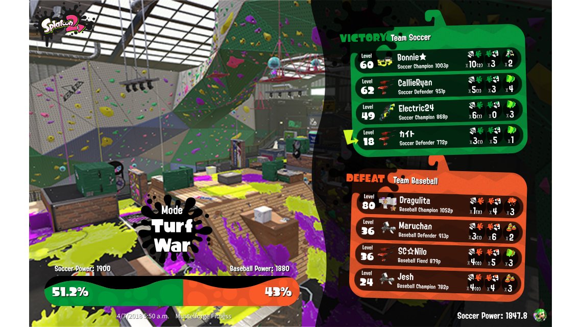 | Splatfest Power | 1,847.8 | |||||||||||||||||||||||||||||||