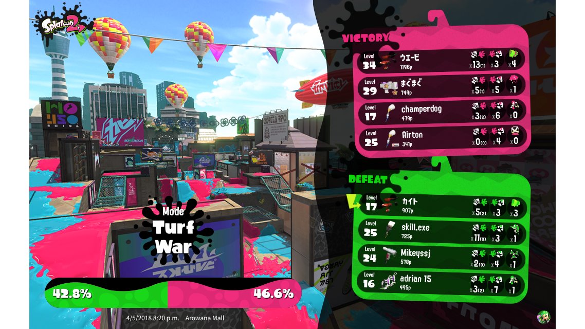 | Mode | Turf War - Regular Battle | |||||||||||||||||||||||||||||||||||||