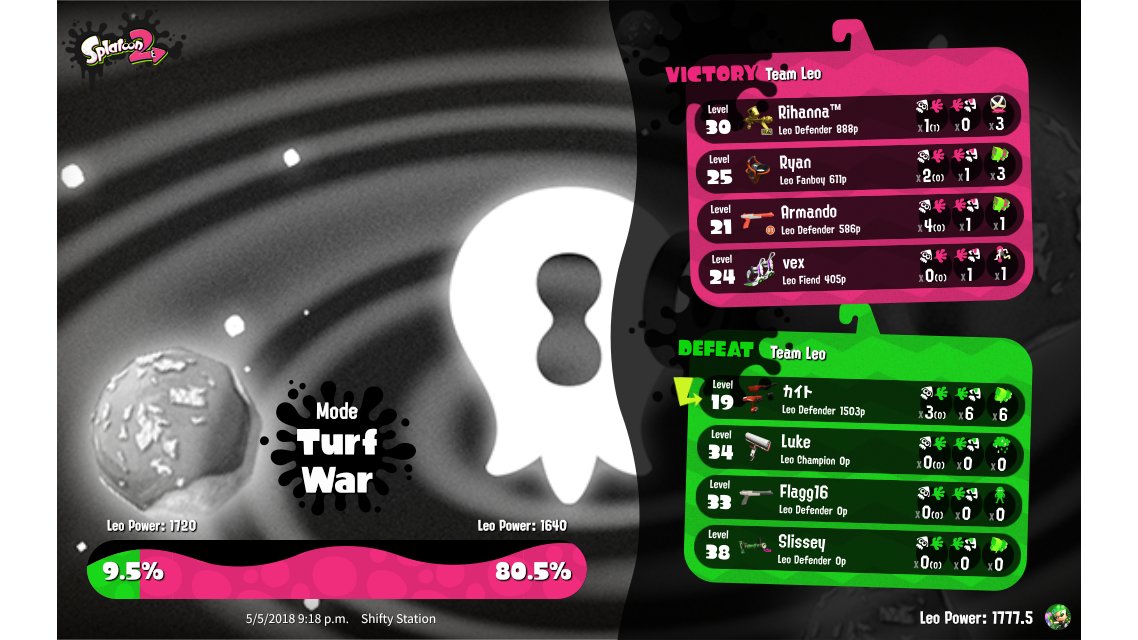 | Splatfest Title | Leo Defender 18 → Leo Defender 20 | ||||||||||||||||||||||||||||