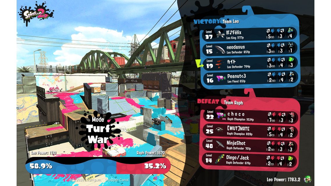| Splatfest Title | Leo Defender 48 → Leo Champion 4 | |||||||||||||||||||||||||||||||