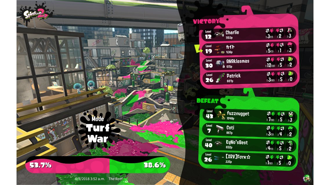 | Mode | Turf War - Regular Battle | |||||||||||||||||||||||||||||||
