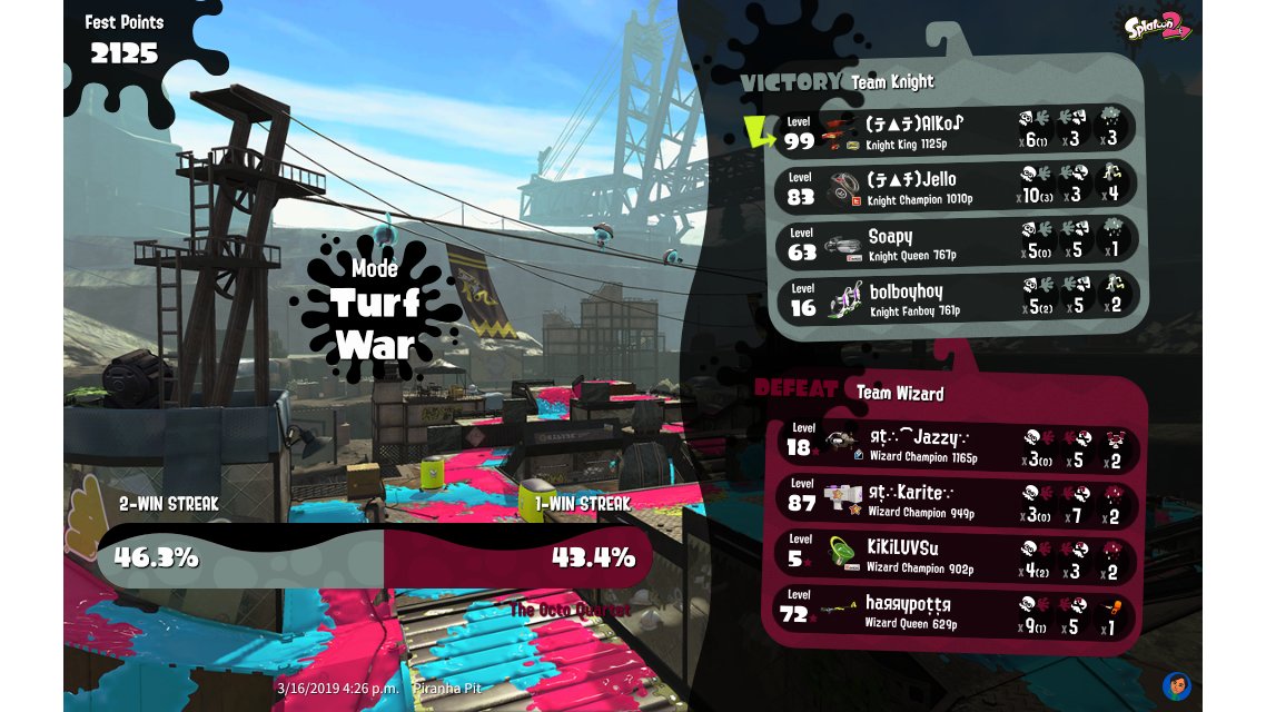 | Splatfest Title | Knight King → Knight King | |||||||||||||||||||||||||||||||||||||||||||
