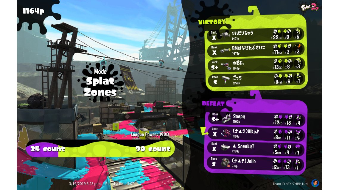 | Mode | Splat Zones - League Battle (Quad) | ||||||||||||||||||||||||||||||||||||||||