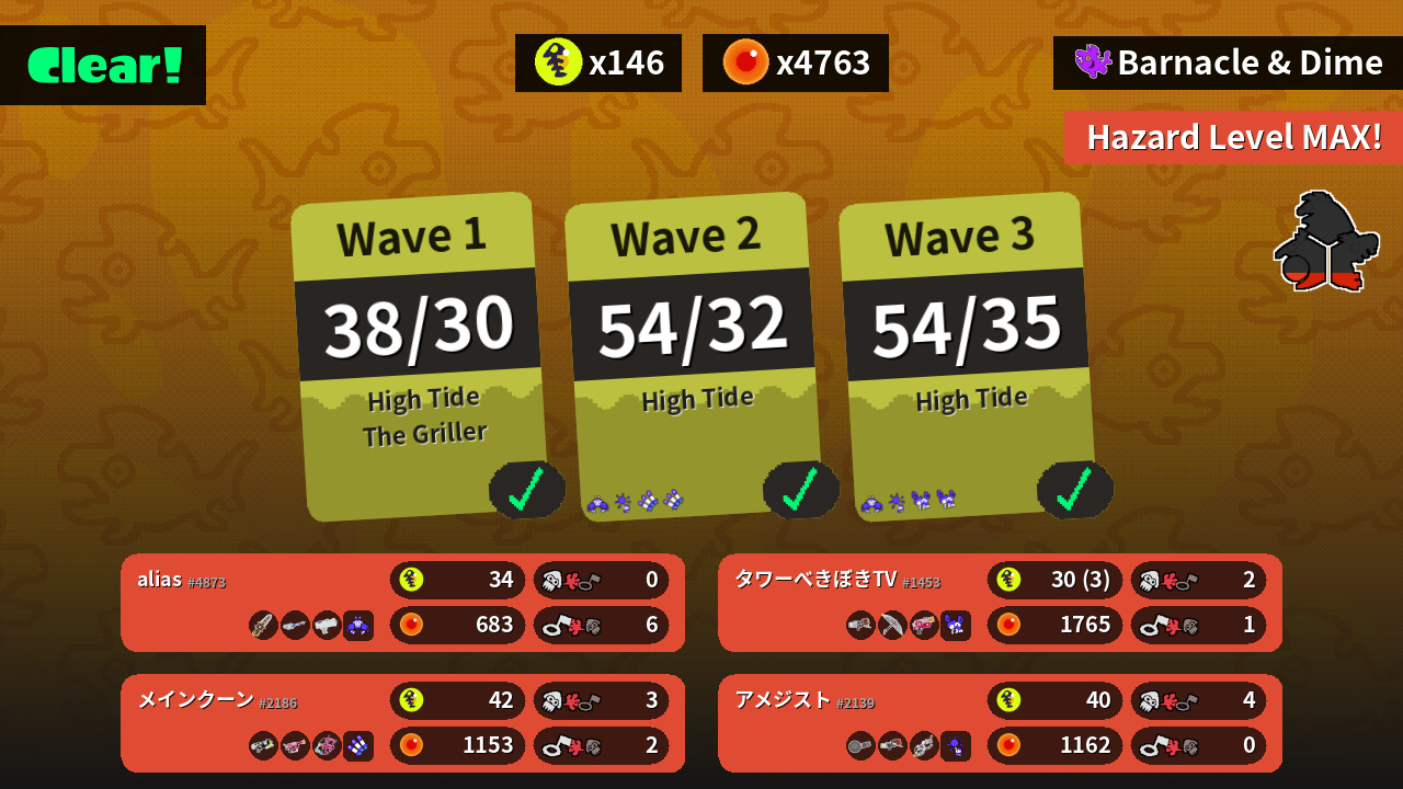 | Weapons | Grizzco Splatana E-liter 4K Splattershot Jr. | Splattershot Nova Rapid Blaster Pro Dapple Dualies | Nautilus 47 Range Blaster Dark Tetra Dualies | Blaster Splat Brella Rapid Blaster |