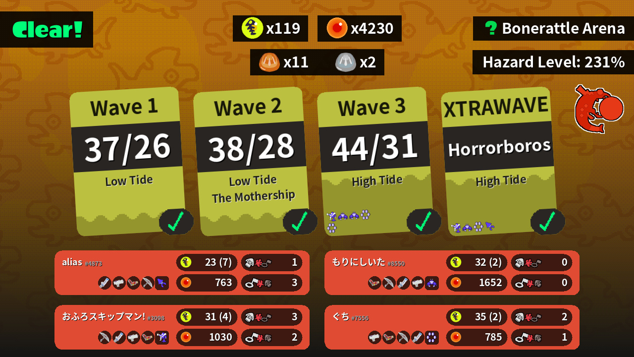 | Boss Salmonid | 8 | 16 | 23 | 13 |