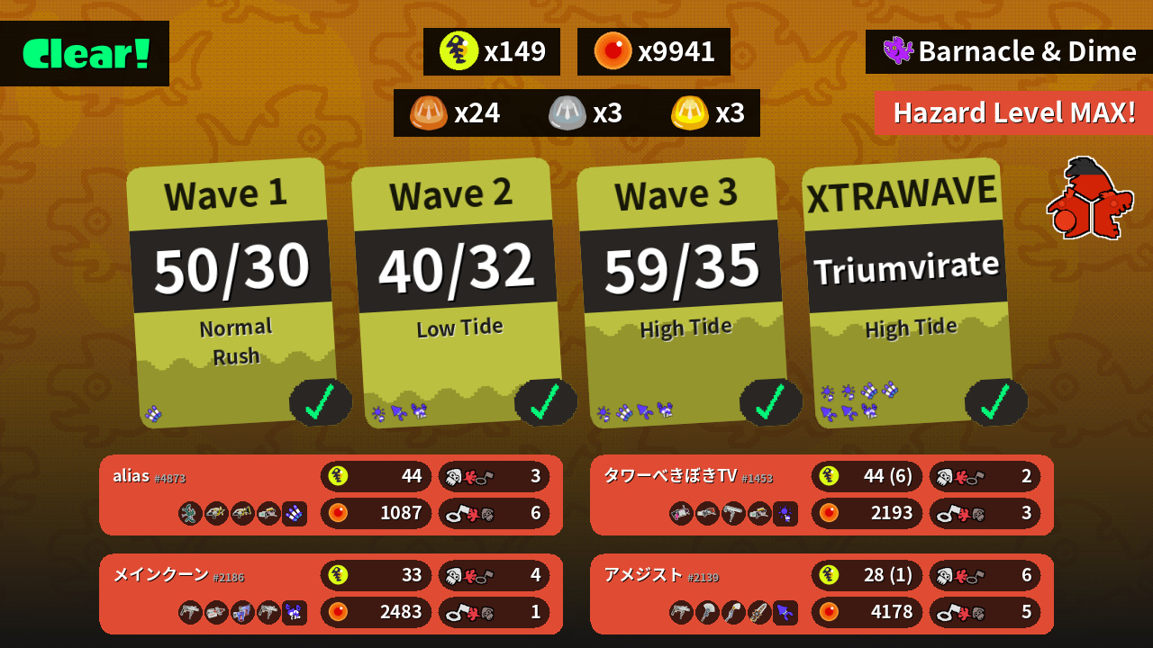 | Weapons | Wellstring V Splash-o-matic Sploosh-o-matic Grizzco Blaster | .52 Gal Range Blaster Dynamo Roller Grizzco Blaster | Grizzco Roller Heavy Edit Splatling Glooga Dualies Grizzco Roller | Grizzco Roller Painbrush Inkbrush Grizzco Splatana |