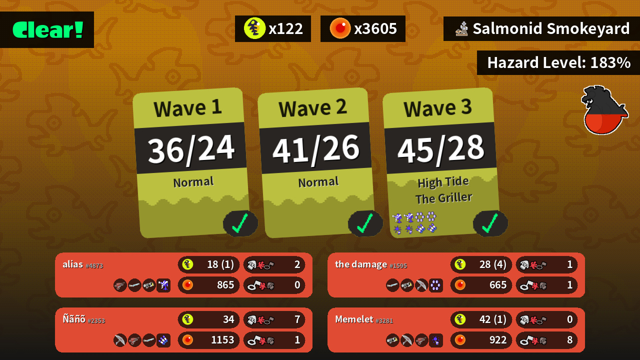| Boss Salmonid | 13 | 7 | 15 | 12 |
