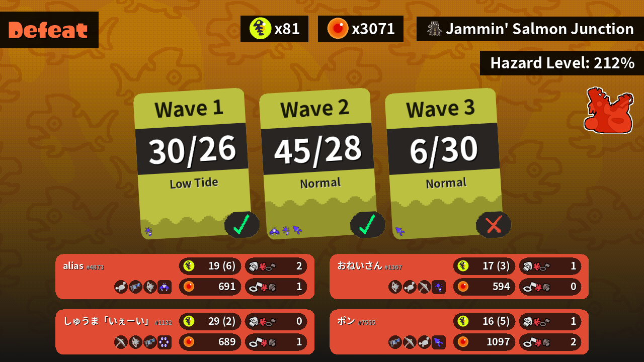 | Weapons | Luna Blaster L-3 Nozzlenose Tri-Stringer | Recycled Brella 24 Mk I Tri-Stringer L-3 Nozzlenose | Tri-Stringer Luna Blaster Recycled Brella 24 Mk I | L-3 Nozzlenose Recycled Brella 24 Mk I Luna Blaster |