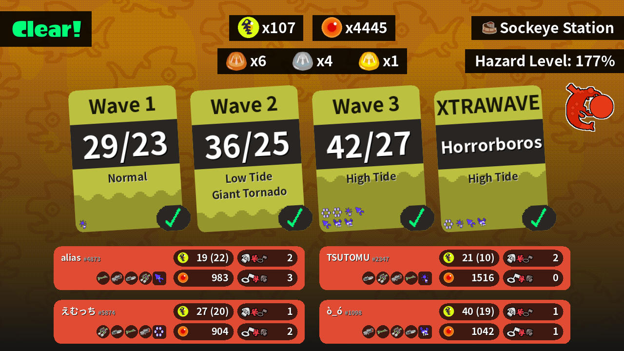| Boss Salmonid | 9 | 12 | 9 | 17 |