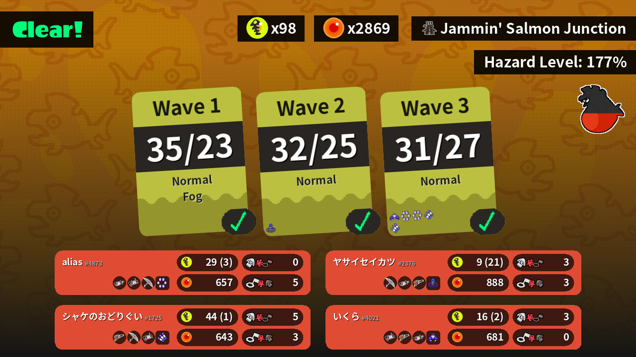 | Weapons | .96 Gal .52 Gal Splat Brella | Squeezer Splat Brella .52 Gal | .52 Gal Squeezer .96 Gal | Splat Brella .96 Gal Squeezer |