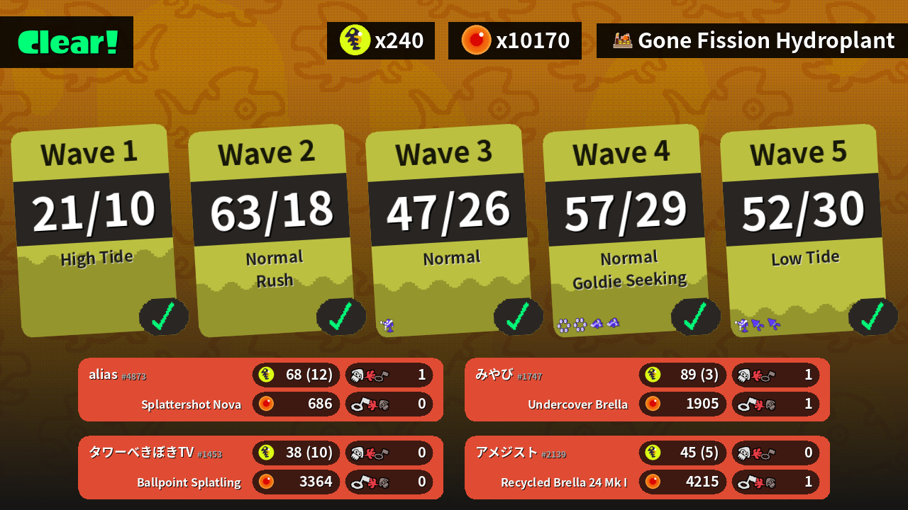 | Weapons | Splattershot Nova | Undercover Brella | Recycled Brella 24 Mk I | Ballpoint Splatling |