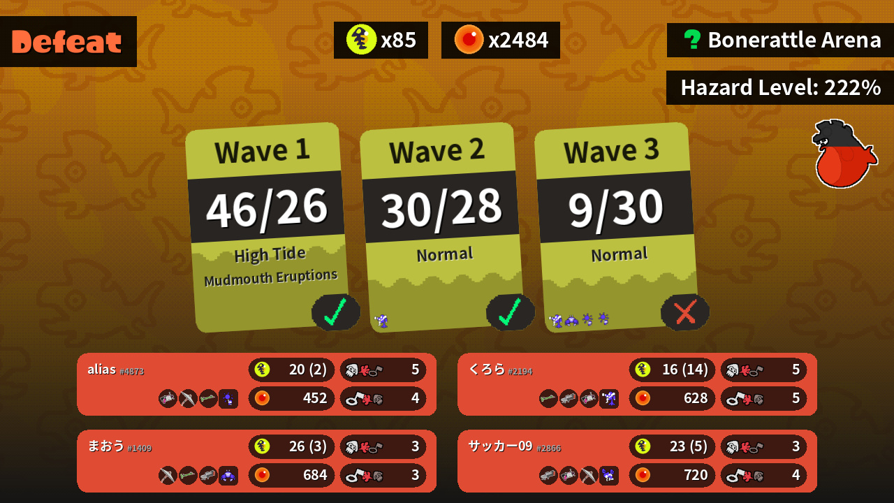 | Weapons | .52 Gal Recycled Brella 24 Mk I Bamboozler 14 Mk I | Recycled Brella 24 Mk I Bamboozler 14 Mk I S-BLAST '92 | S-BLAST '92 .52 Gal Recycled Brella 24 Mk I | Bamboozler 14 Mk I S-BLAST '92 .52 Gal |