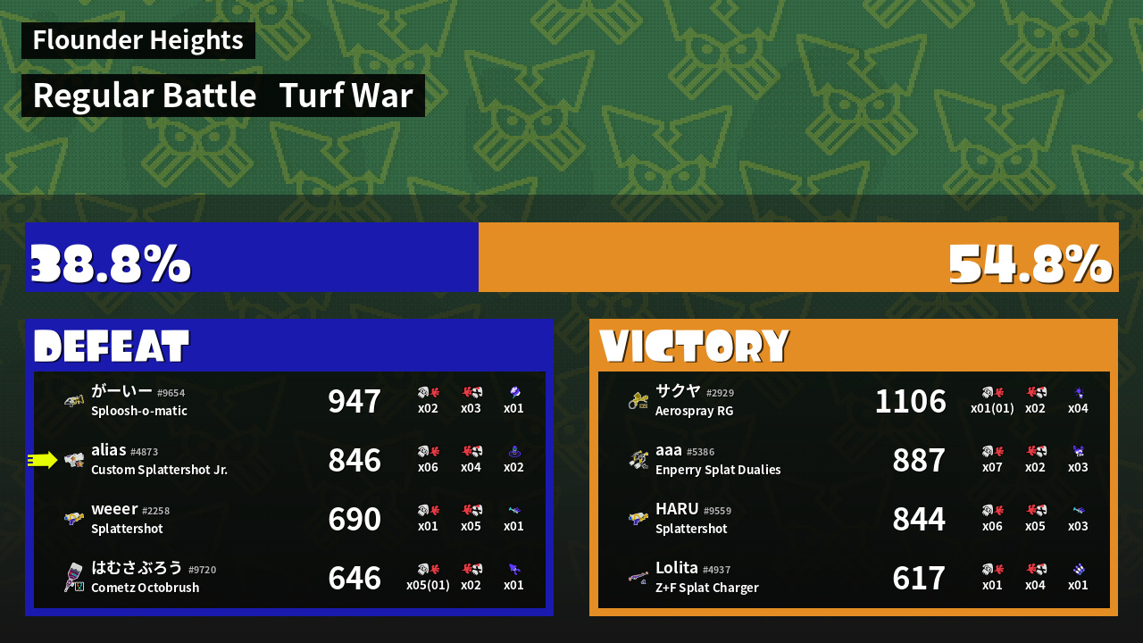 | Mode | Turf War - Regular Battle | ||
