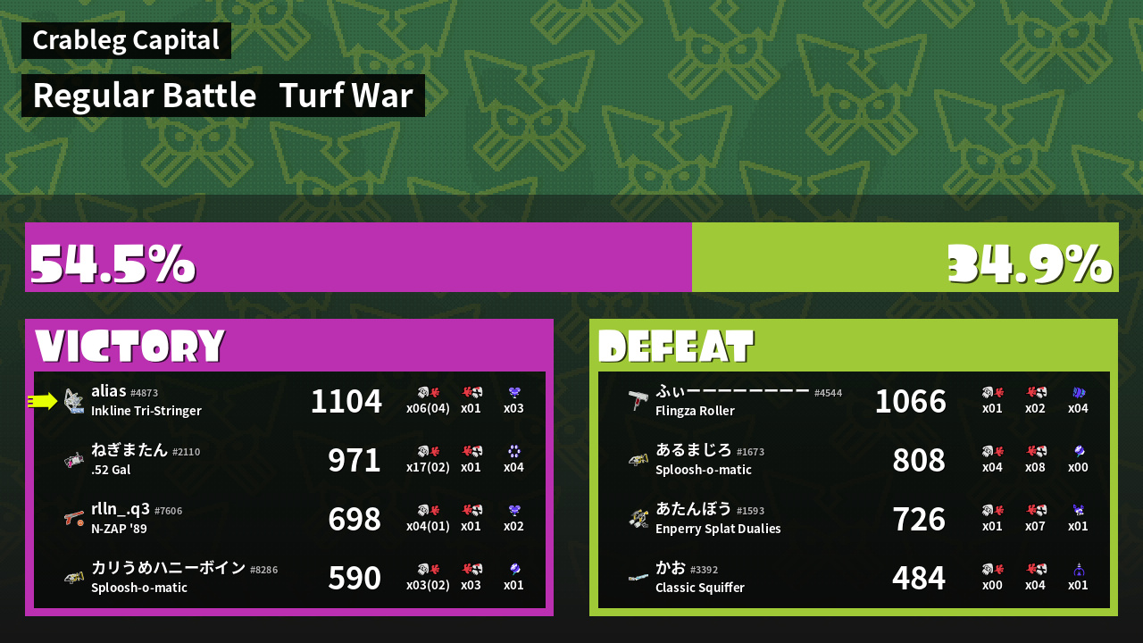 | Medals | #1 Turf Inker #1 Enemy-Base Inker #1 Splat Assister | ||