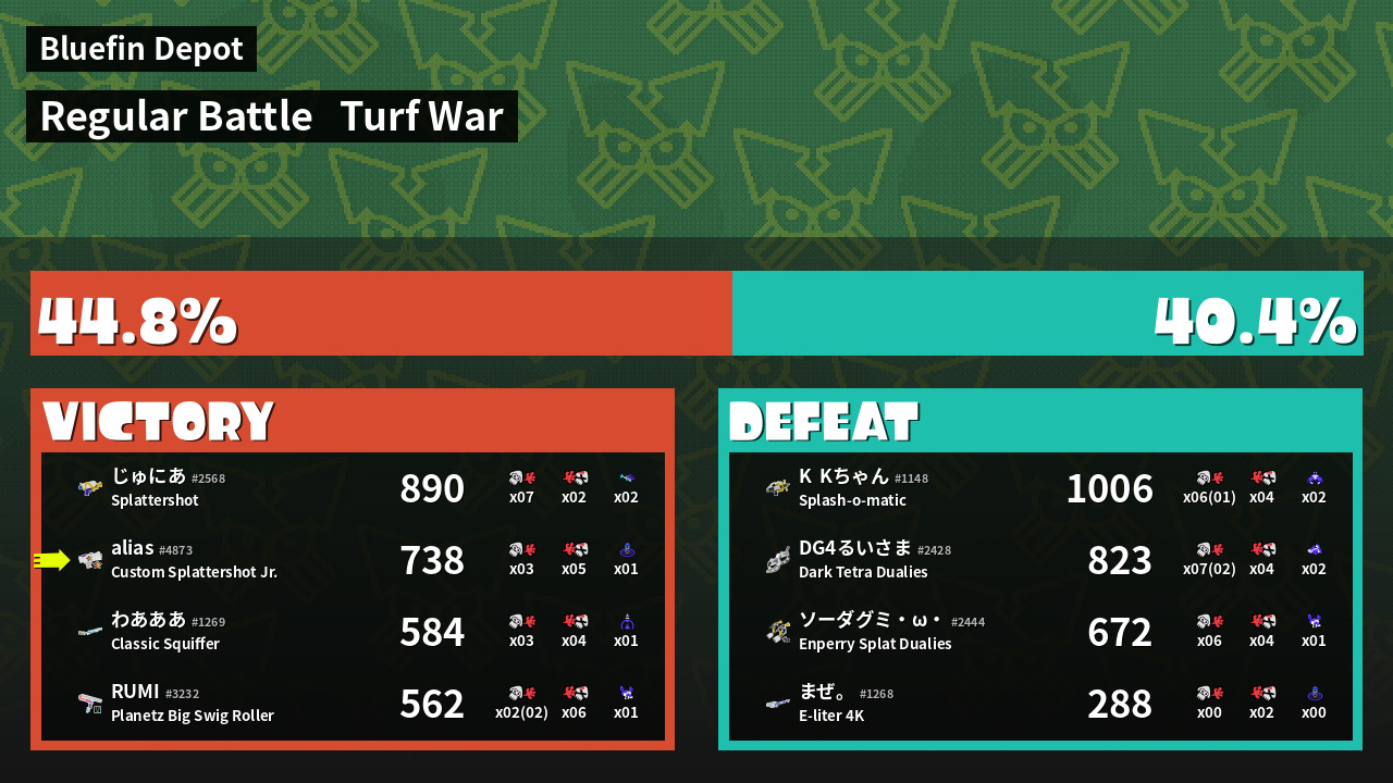 | Mode | Turf War - Regular Battle | ||