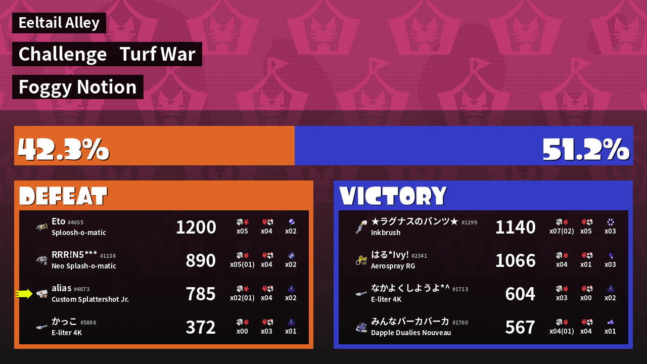 | Medals | #1 Splat Assister #1 Ink Consumer #2 Popular Target | ||