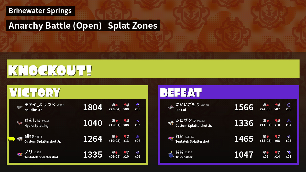 | Mode | Splat Zones - Anarchy Battle (Open) | ||
