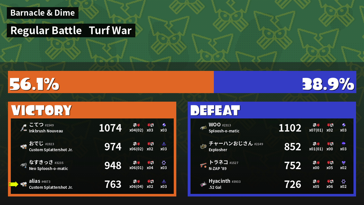 | Mode | Turf War - Regular Battle | ||