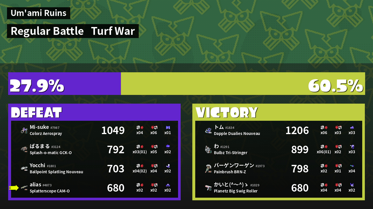 | Mode | Turf War - Regular Battle | ||