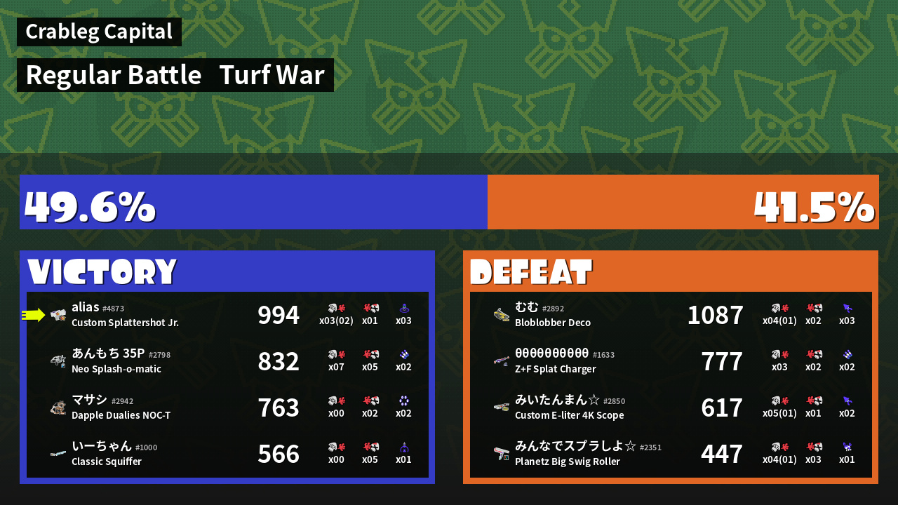 | Mode | Turf War - Regular Battle | ||