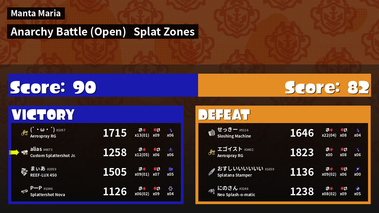 | Mode | Splat Zones - Anarchy Battle (Open) | ||