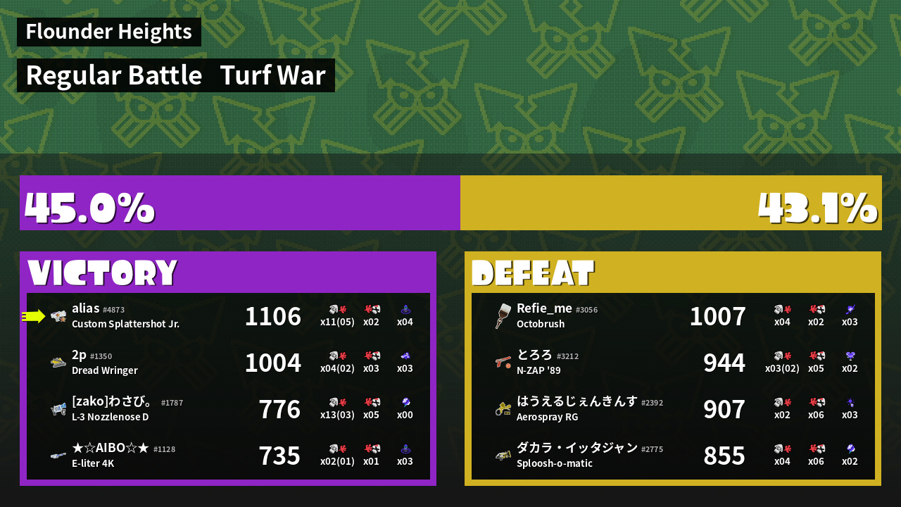 | Medals | #1 Turf Inker #1 Splat Assister #1 Ink Consumer | ||