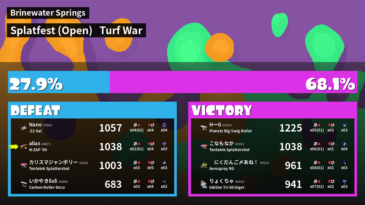 | Medals | #1 Popular Target #1 Enemy-Base Inker #1 Damage Taker | ||
