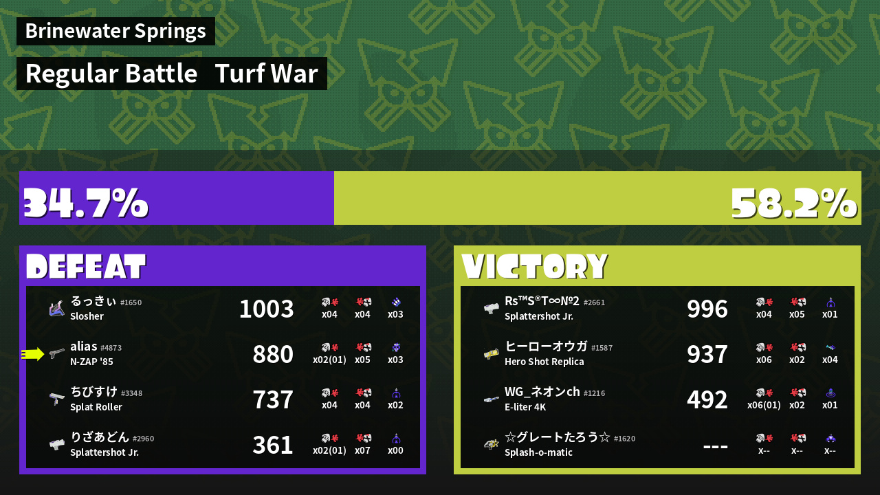 | Mode | Turf War - Regular Battle | ||