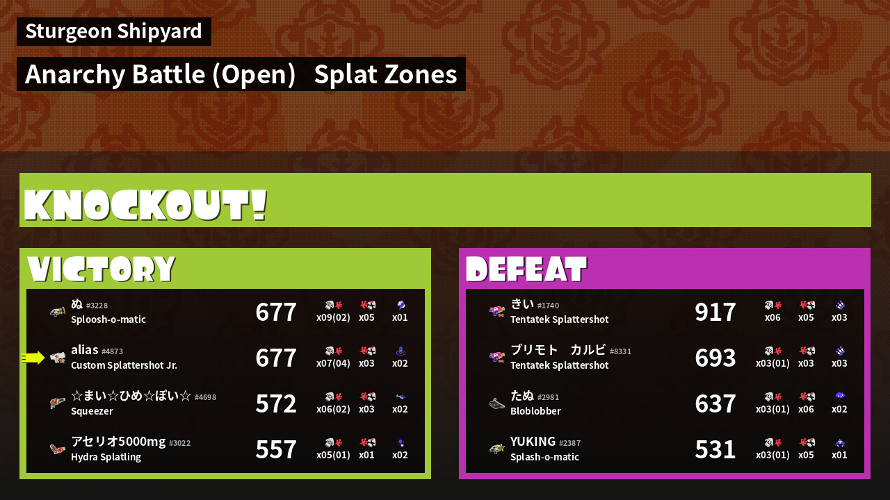 | Mode | Splat Zones - Anarchy Battle (Open) | ||
