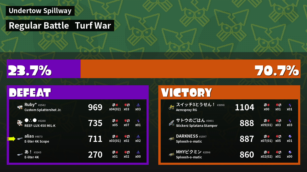 | Medals | #2 Popular Target #2 Enemy Splatter #2 Splat Assister | ||