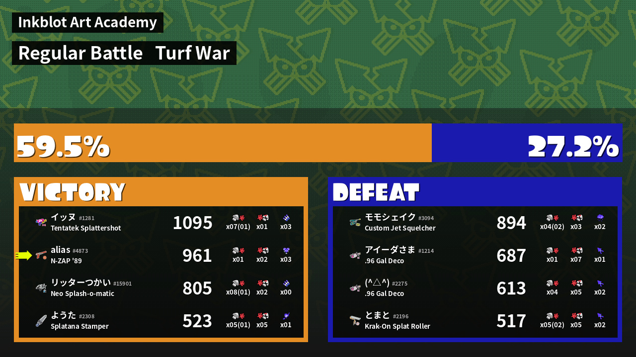 | Medals | #1 Enemy-Base Inker #1 Ground Traveler #1 Ink Consumer | ||