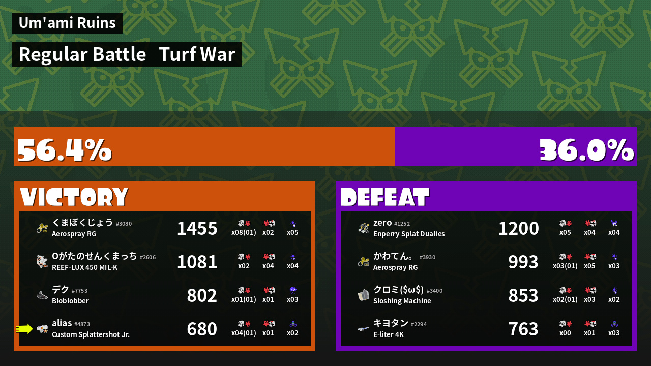 | Mode | Turf War - Regular Battle | ||