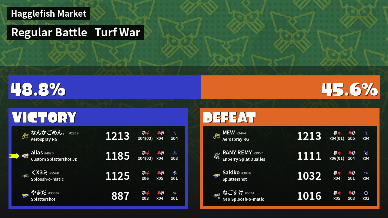 | Mode | Turf War - Regular Battle | ||